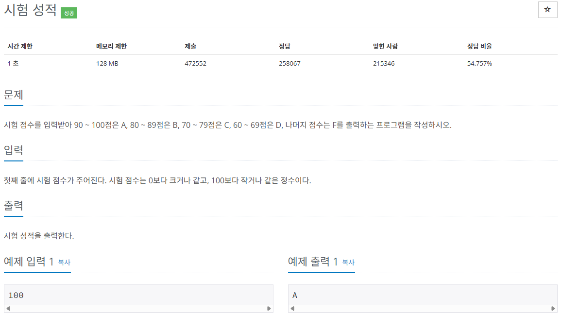 [BAEKJOON 9498번 : 시험 성적]