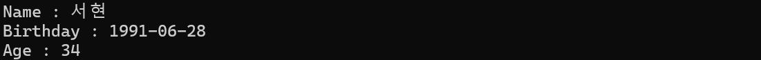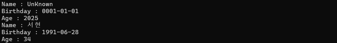 Console.WriteLine($"Age : {birth.Age}");