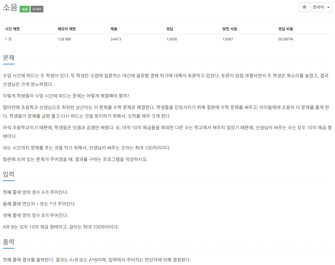 그런데 문제를 다시 검토해보니 최대 100자리라는 조건을 확인하였고, long long 자료형을 사용해야하나 싶었습니다.