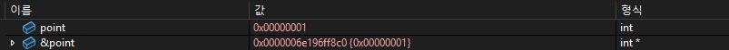 이렇게 point의 주소를 조사식에 넣고 디버깅을 해보면, 모두 같은 메모리 주소를 가지고 있는 것을 확인할 수 있습니다.
