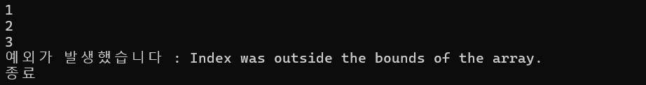 Console.WriteLine("종료");