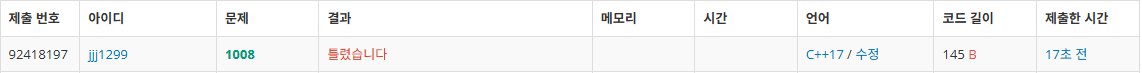 실제로 해당 문제를 float 자료형을 사용하면 틀렸다는 결과를 받게 됩니다.