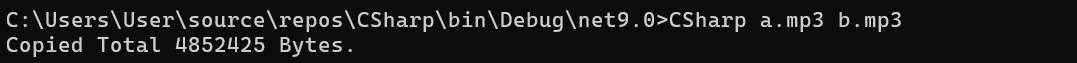 Console.WriteLine($"Copied Total {totalCopied} Bytes.");