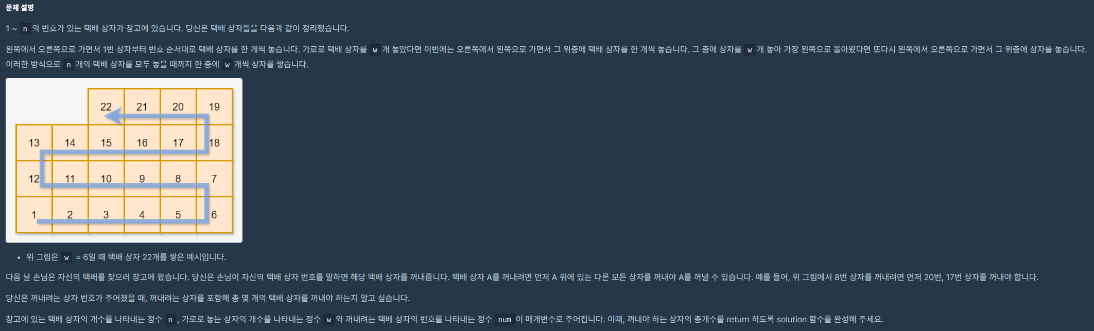 [Programmers 2025 코드챌린지 2차 예선 : 택배 상자 꺼내기(Lv.1)]