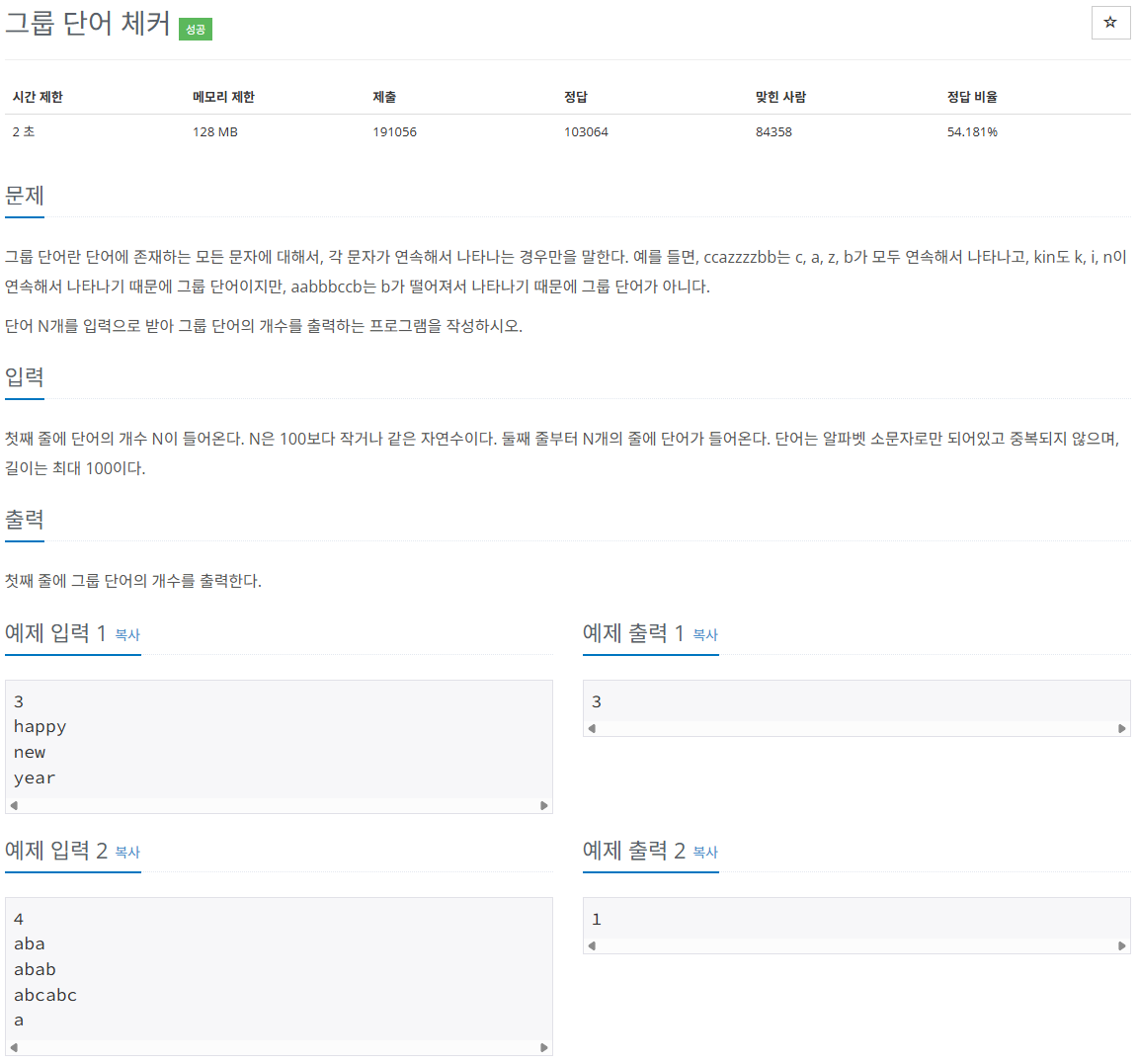 이제 main 함수에서 isGroupWord(word)가 true라면 count를 1 더해줘서, 최종적으로 그룹 단어가 몇 개인지를 알 수 있습니다.